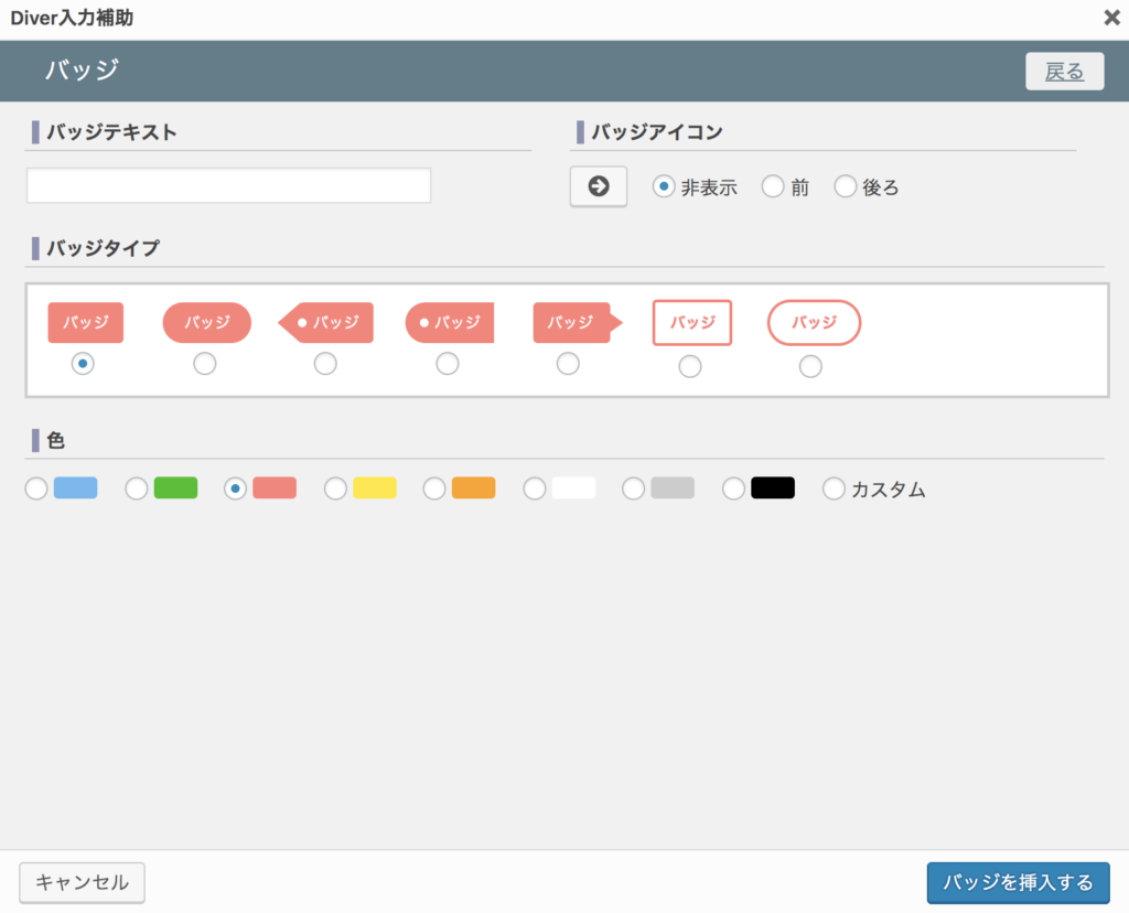このページでは、Diverの入力補助機能の1つ「バッジ」で作れるデザインを紹介します。