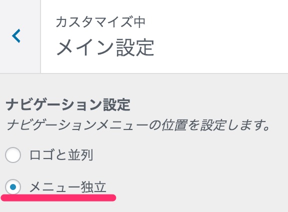 - ヘッダーボタンを表示させるには「ナビゲーション設定」で「メニュー独立」にする必要があります。